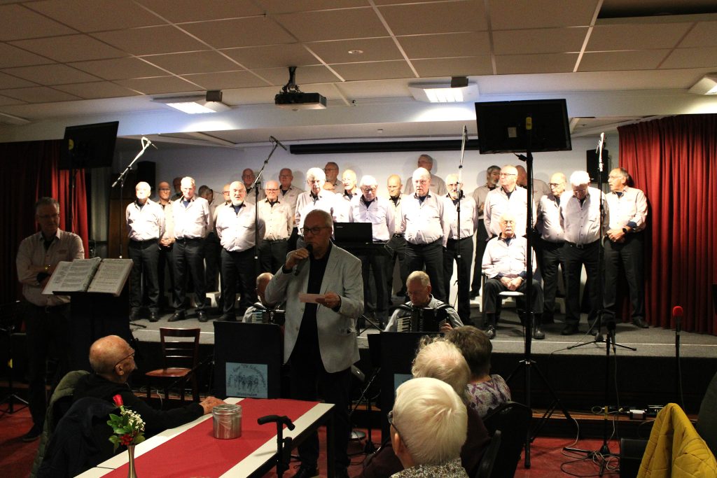 Nummer twee van de serie van vier. Het jaarlijks terugkerend kerstconcert in de Reensche Compagnie in Hoogezand is ondertussen een traditie geworden. We komen hier al heel wat jaren. De eerste twee blokjes waren Shanty’s in meerdere talen en het laatste blok bestond geheel uit kerstliederen ook in meerdere talen. Voor dit laatste blok hadden we een aangepast outfit aangetrokken. Ondanks de kleine groep zangers en het gehele combo was het toch een heel geslaagd optreden. Het geheel werd op soms een ludieke manier gepresenteerd door onze voorzitter. Bij het kerstgedeelte werden toepasselijke gedichten voorgelezen. En dan, terwijl het niet op ons programma stond, werd na het tweede blok op veler verzoek Bora, Bora gezongen.
