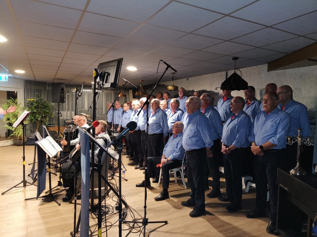 Voorzitter Koos Brouwer praatte de liederen aaneen en kondigde ook de solisten aan. Deze avond waren dat Ailko Hassing, Winnie Kinzer,